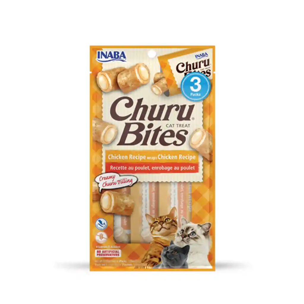 Cada bocado en forma de almohada comienza con una suave pasta de pollo al horno sin cereales, conservantes, carragenanos ni colorantes artificiales. Después rellenamos los centros con el delicioso relleno Churu de INABA para darle a tu gato el doble de textura TOTALMENTE TUBULAR: Los tubos individuales, perfectamente porcionados, contienen 0,35 onzas de bocados (unos diez bocados), lo que ayuda a mantener las golosinas frescas y ayuda a prevenir los snaccidents del gatito HECHO CON INGREDIENTES EN LOS QUE PUEDES CONFIAR: Cada producto INABA está hecho con deliciosos ingredientes de alta calidad, incluyendo pollo de granja y atún salvaje. APROBADO POR LOS GATITOS QUISQUILLOSOS: Hasta el gato más quisquilloso devorará estos bocaditos directamente de tu mano, incluso si has usado el centro cremoso para colar una pastilla en su snack especial. SUAVE, SAVOROSO Y SALUDABLE: Con un 72% de humedad y unas 13 calorías por tubo, son golosinas bajas en calorías con las que puede sentirse bien alimentando a su gato. También hemos añadido vitamina E para su sistema inmunitario y extracto de té verde como antioxidante.