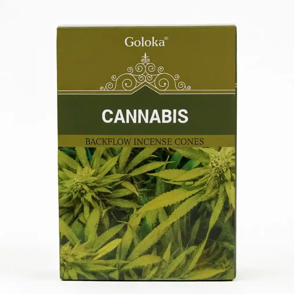 Están diseñados para quemadores tipo cascada: al encenderlos, el humo cae hacia abajo creando un efecto visual relajante mientras perfuma el ambiente. El aroma a cannabis es herbal y terrenal, usado para generar sensación de calma, concentración y equilibrio en el espacio. No contiene sustancias psicoactivas. La caja contiene 10 conos de incienso