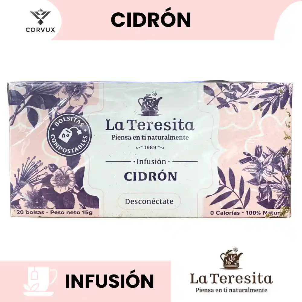 Una infusión suave y aromática elaborada con hojas de cidrón 100% natural, ideal para quienes buscan un momento de calma y conexión con lo esencial. La Teresita combina tradición y bienestar en una bebida sin calorías, perfecta para desconectarte del estrés y disfrutar un respiro natural a cualquier hora del día. Beneficios El cidrón, conocido desde hace siglos por sus propiedades relajantes y digestivas, ayuda a aliviar la tensión, reducir el nerviosismo y favorecer el descanso. También puede contribuir a una buena digestión y a la sensación de bienestar general. 🌙✨ Composición ✦ Ingrediente único: 100% Cidrón (Aloysia triphylla) ✦ Bolsitas compostables y biodegradables, elaboradas con 80% celulosa y 20% PLA (material vegetal) 🌱 Modo de consumo ✦ Coloca una bolsita en una taza con agua recién hervida. ✦ Déjala reposar durante 5 minutos. ✦ Endulza al gusto si lo deseas. ✦ Para una versión refrescante, agrega hielo y disfruta fría. ❄️