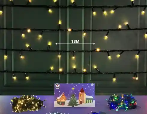 ¡La Navidad brillará más que nunca! Ideales para decorar árboles, fachadas, balcones o interiores, creando un ambiente festivo y lleno de color. • Largo: 18 metros. • 300 bombillos LED brillantes. • Bajo consumo de energía. • Cable resistente y de fácil instalación. . COLOR MULTICOLOR