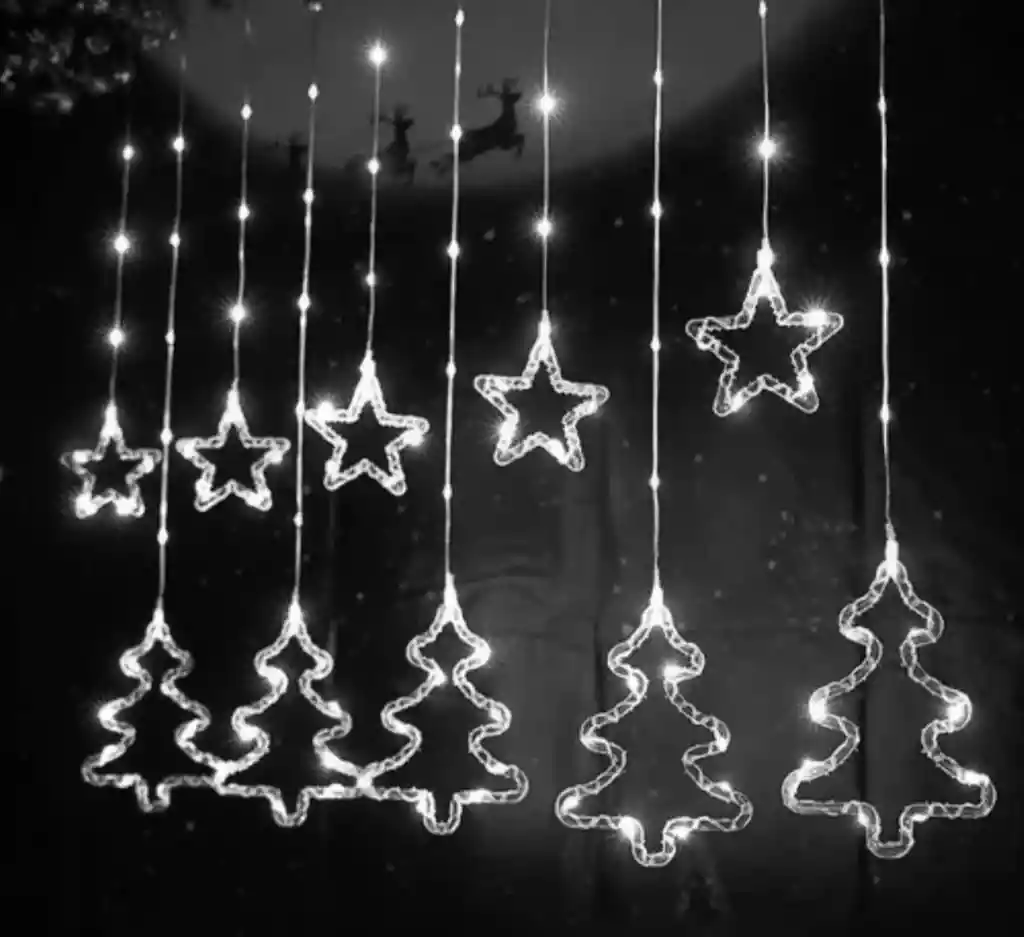 cortina punta estrella y arbol x10 pcs x 3 metros