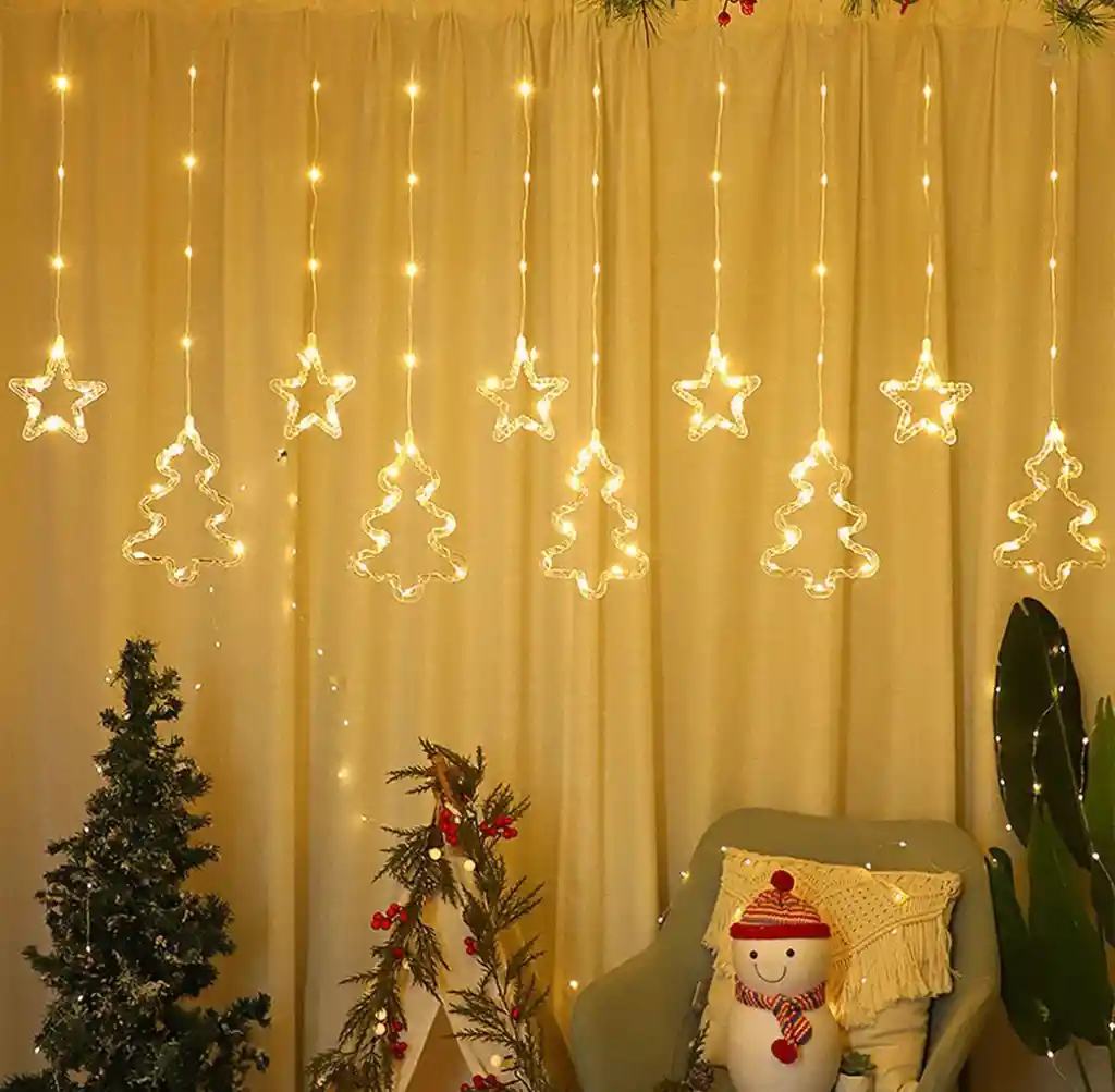 cortina punta estrella y arbol 10pcs x 3mts calida