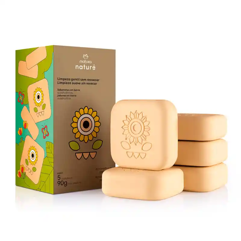 Set de 5 jabones en barra con forma cuadrada, ideales para una limpieza suave y refrescante de la piel. Los jabones en barra Cuadraditos ofrecen una limpieza profunda y delicada, formulados para cuidar la piel mientras eliminan impurezas. Cada barra de 90 g es fácil de manejar y tiene un diseño práctico para uso diario en manos, rostro o cuerpo. Su fórmula balanceada ayuda a mantener la piel hidratada y libre de resequedad, dejando una sensación fresca y revitalizante después de cada uso. Perfectos para toda la familia y para quienes prefieren productos clásicos y efectivos. Beneficios: Limpieza suave y efectiva. Mantiene la piel hidratada y nutrida. Formato práctico y fácil de usar. Apto para todo tipo de piel. Presentación en set para mayor ahorro y comodidad. Modo de uso: Humedece la barra y frota suavemente sobre la piel para generar espuma. Enjuaga con agua tibia. Usar diariamente para mejores resultados. Contenido: 5 unidades x 90 g cada uno Las imágenes son ilustrativas, este producto esta en una posición frontal. El contenido de cada producto es el indicado en su descripción Sobre la marca Naturé Diversión y aprendizaje en productos ideales para niños a partir de 3 años. La línea tiene productos con fórmulas suaves y probadas dermatológicamente. Sus envases lúdicos transforman el momento del baño en pura diversión.