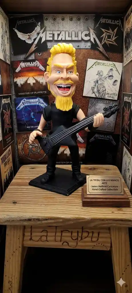 ¡Lleva la energía del escenario a tu casa! 🤘 Colección exclusiva de figuras tipo caricatura de los integrantes de Metallica. Cada pieza es una obra de arte única, esculpida y pintada totalmente a mano. ●Personajes disponibles: James Hetfield ●Material: Alta calidad con acabados detallados en instrumentos y vestimenta. ●Ideal para: Coleccionistas, fans del metal y decoración de espacios con estilo rockero.