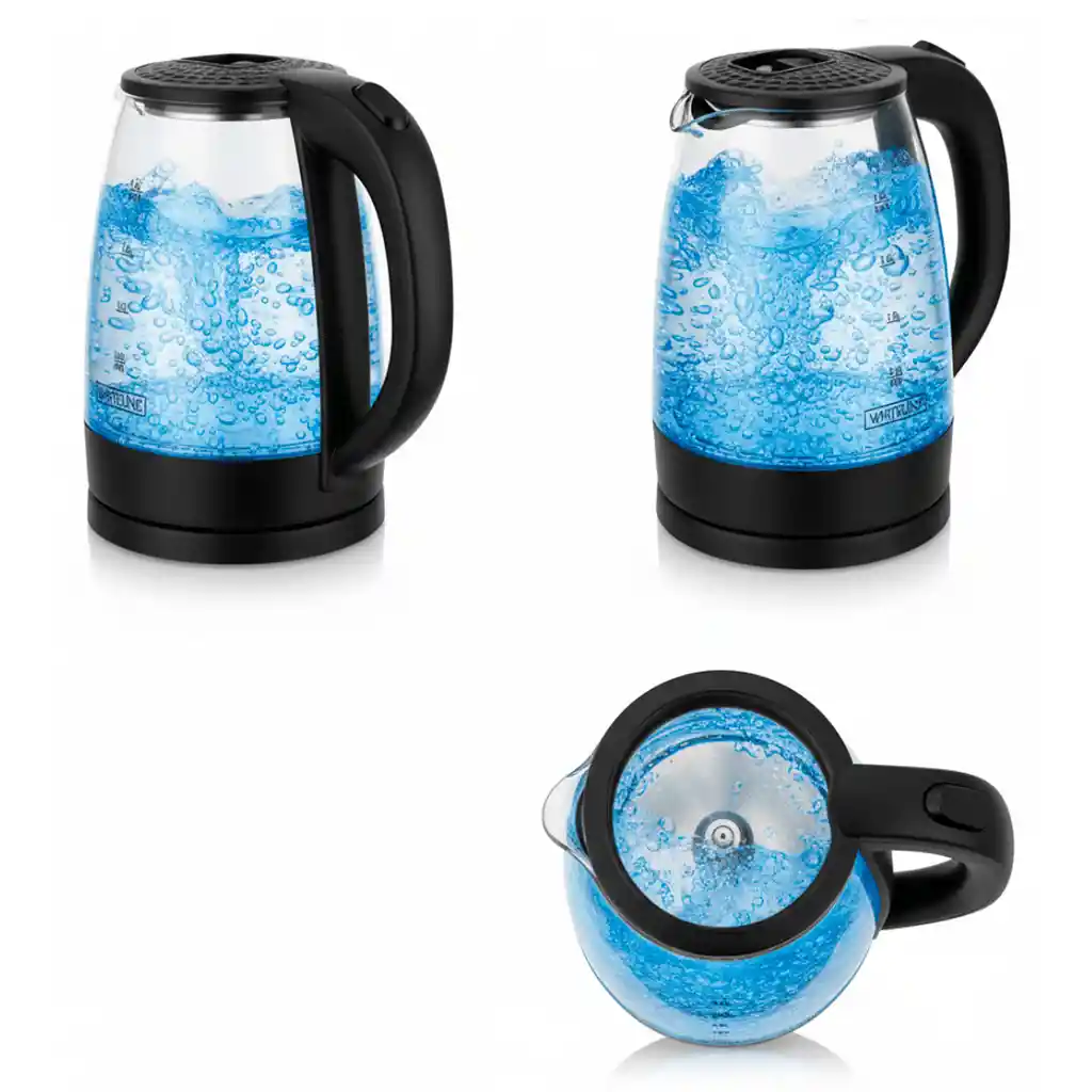 Capacidad: Cuenta con una capacidad máxima de 2.0 litros. Seguridad: Incluye protección contra funcionamiento en seco y apagado automático. Material: Jarra de vidrio transparente con diseño de base giratoria de 360 grados.