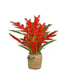Jarron con 15 heliconias y 5 varas de rusco. La flor puede ser sustituida dependiendo la disponibilidad de color y del producto “Mensaje Personalizado” máximo de 30 caracteres (Dejar el mensaje en el chat, los comentarios no se previsualizan para la tienda por lo que si se dejan allí no podrá ser incluido)