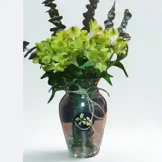 Jarrón de un paquete de astromelia con eucalipto. Nota: La flor puede ser sustituida dependiendo la disponibilidad de color y del producto “Mensaje Personalizado” máximo de 30 caracteres (Dejar el mensaje en el chat, los comentarios no se previsualizan para la tienda por lo que si se dejan allí no podrá ser incluido).