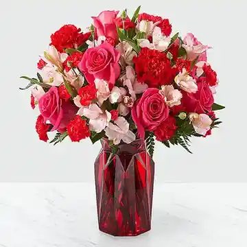 Jarron de 12 rosas,5 claveles y 10 varas de astromelia. La flor puede ser sustituida dependiendo la disponibilidad de color y del producto “Mensaje Personalizado” máximo de 30 caracteres (Dejar el mensaje en el chat, los comentarios no se previsualizan para la tienda por lo que si se dejan allí no podrá ser incluido)