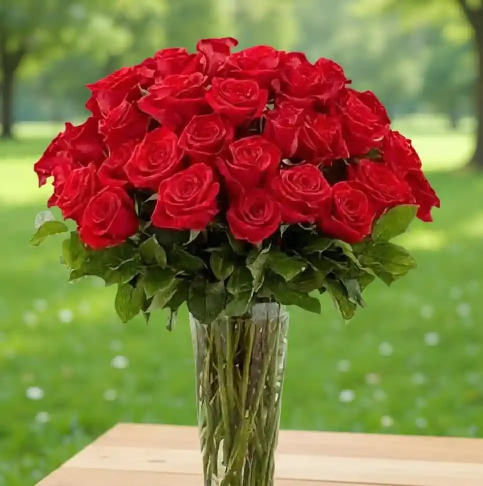 Un arreglo sofisticado que expresa amor profundo y admiración. Elaborado con 24 rosas rojas frescas, acompañadas de rusco y solidago, dispuestas en un jarrón que realza la intensidad y belleza de cada flor. Ideal para aniversarios, celebraciones especiales o para expresar sentimientos inolvidables. ✨ Magia en cada flor.