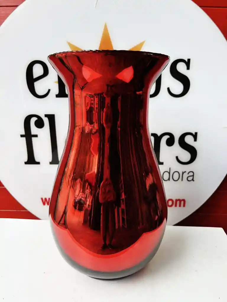 Jarrón premium en vidrio hologramado, con altura de 35 cm, diseño moderno y llamativo, ideal para arreglos protagonistas y decoración sofisticada.