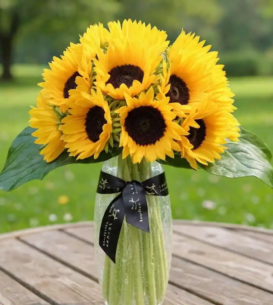 Un arreglo que llena los espacios de luz y vitalidad. Elaborado con 12 girasoles frescos, acompañados de rusco y solidago, dispuestos en un jarrón que realza la belleza natural de las flores. Ideal para decorar, regalar y transmitir alegría en cualquier ocasión. ✨ Magia en cada flor.