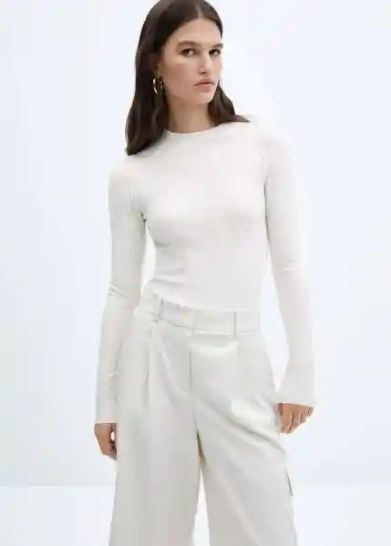 Cuello Perkins Diseño Entallado Disponible Plus Looks de Oficina Manga Larga Tejido de Punto de Canalé - 57065793_05.