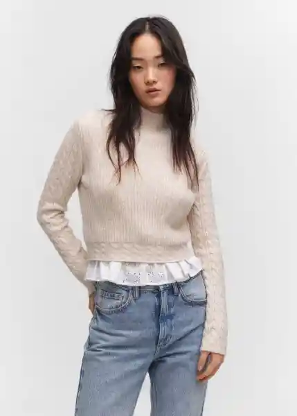 Cuello Perkins Detalles Trenzados Diseño Crop Diseño Recto Manga Larga Tejido de Punto Grueso Terminaciones de...Ver más