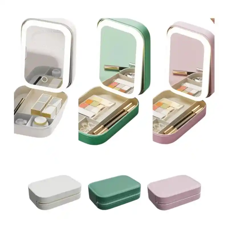 leva tu rutina de belleza con nuestra Cosmetiquera con Espejo LED, el accesorio perfecto para mantener tus productos de maquillaje organizados y al alcance, mientras te aseguras de siempre tener un reflejo claro y preciso. Con un diseño sofisticado y funcional, esta cosmetiquera es ideal para quienes buscan un toque de lujo y comodidad en su día a día. Características destacadas: Diseño de Alta Calidad: Hecha con materiales duraderos y resistentes, esta cosmetiquera cuenta con un acabado que ofrece un toque de sofisticación, al mismo tiempo que es fácil de limpiar y mantener. Espejo LED Integrado: Incorpora un espejo con iluminación LED para brindarte una visión clara y brillante, perfecta para aplicar tu maquillaje en cualquier entorno, incluso con poca luz. El espejo se activa con un botón y ofrece una iluminación suave y ajustable para que puedas ver cada detalle con precisión. Espacio de Almacenaje Organizado: Con compartimentos inteligentes, esta cosmetiquera ofrece suficiente espacio para tus productos esenciales de maquillaje, cosméticos, brochas y accesorios. Mantén todo ordenado y al alcance de la mano de forma eficiente y cómoda. Batería Recargable: El espejo LED funciona con una batería recargable de larga duración, por lo que no tendrás que preocuparte por reemplazar pilas. Simplemente conéctalo a tu puerto USB para recargarlo y seguir disfrutando de su práctica funcionalidad. Compacta y Portátil: Su tamaño compacto la hace ideal para llevarla en tu bolso, mochila o maleta de viaje, asegurando que siempre tengas acceso a un espejo iluminado cuando lo necesites, estés donde estés.