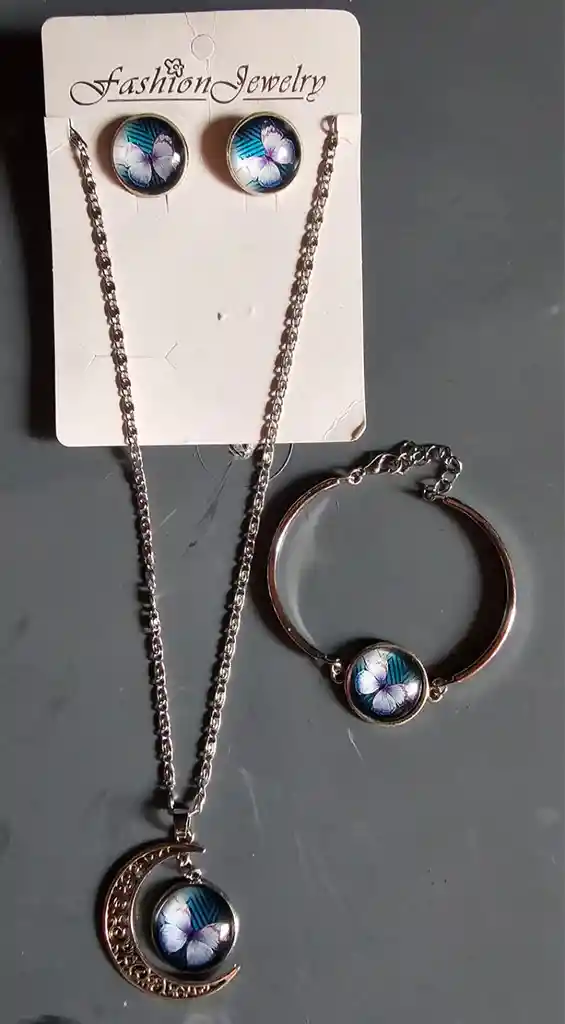 JUEGO ARETES PULSERA Y COLLAR MARIPOSA PLATEADO REGALO IDEAL PARA CUALQUIER OCASION AGUINALDO NAVIDAD
