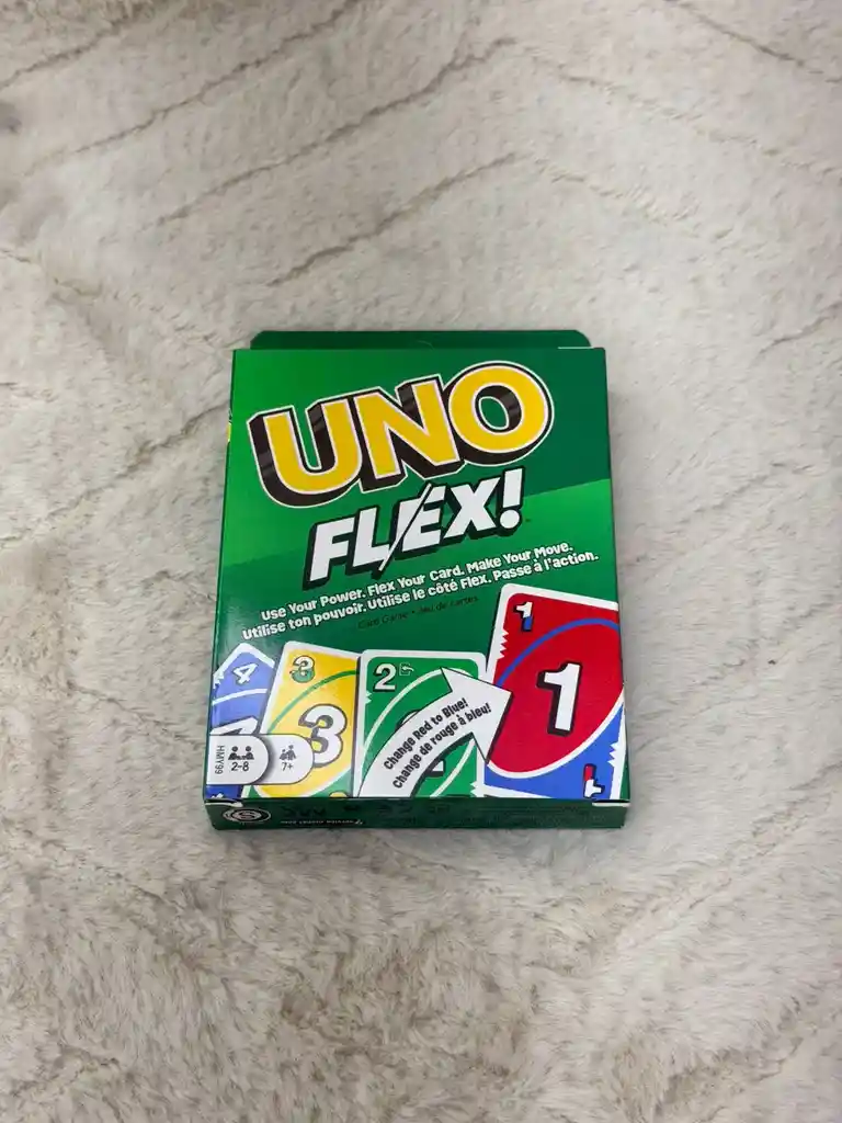 UNO™ Flex es como el clásico juego UNO® que los jugadores conocen y adoran, pero con un toque más flexible. Las cartas especiales permiten a los jugadores cambiar el color de una carta para hacerla coincidir: un 4 rojo puede convertirse en un 4 verde en un solo movimiento. Las Cartas de Poder y las Cartas de Acción Flex añaden aún más cambios y sorpresas al juego. Perfecto para familias, fiestas y noches de juego, es un excelente regalo para los fans de UNO® y los amantes de los juegos de cartas de 7 años en adelante. Los colores y las decoraciones pueden variar. De 2 a 8 jugadores