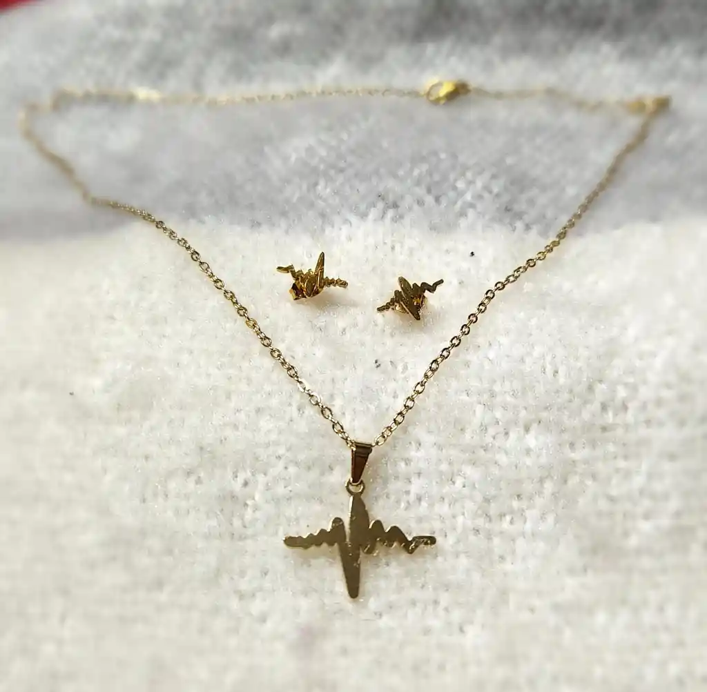JUEGO DE COLLAR Y ARETES, EN ACERO INOXIDABLE - FORMA LINEA DE LA VIDA