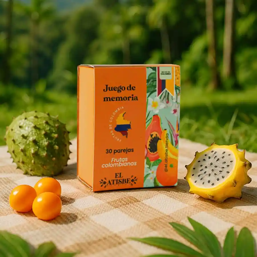 Juego de Memoria Frutas Colombianas. Un juego para encontrar las parejas. Para divertirse y aprenderse en familia. ¡Lleva un pedacito de Colombia a casa! Hecho con mucha sabrosura.