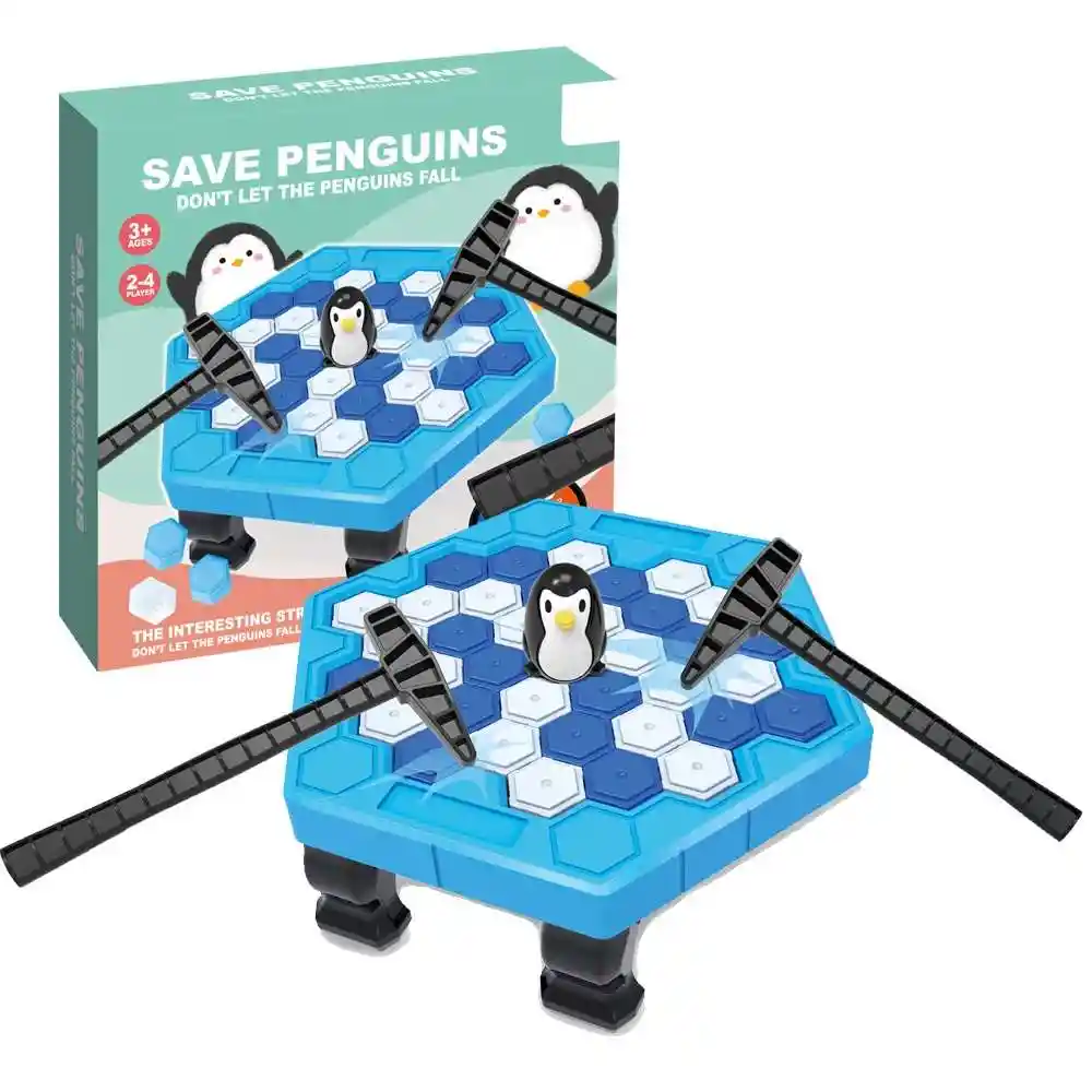 Es un juego de estrategia y destreza donde los jugadores se turnan para golpear bloques de hielo sin derribar al pingüino. Diseñado para 2 a 4 jugadores. Adecuado para niños a partir de 3 años. El juego incluye la base, patas, un pingüino, bloques de hielo, dos martillos y una ruleta. El jugador que hace caer al pingüino pierde la partida.