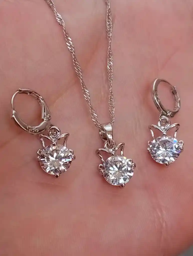 JUEGO EN PLATA 925 2 Aretes 1 Cadena 1 Dije Material: Plata Piedra: Circon