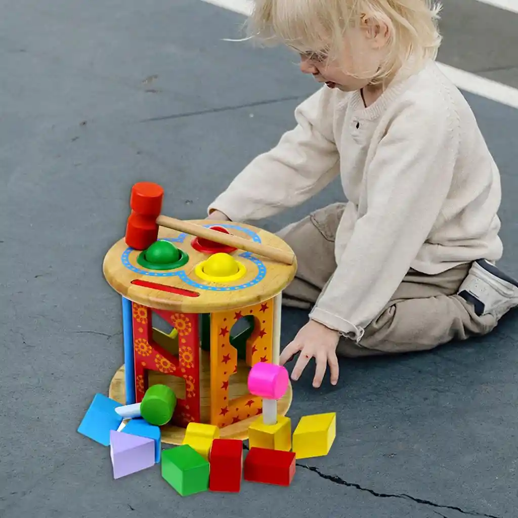MATERIAL SEGURO: Hecho de materiales naturales de protección ambiental, con pinturas no tóxicas a base de agua, este juguete de martillo de madera con superficie bien pulida es seguro para niños pequeños. RECONOCIMIENTO Y COMBINACIÓN DE COLORES: Los bloques multiformato están pintados con diferentes colores vibrantes. Cada bloque tiene una ranura asignada para su color respectivo, que es una gran característica que ayuda a su bebé a reconocer y combinar colores. GRAN REGALO: El juguete de martillo de madera es una opción perfecta como regalo de cumpleaños para niños. Recibirás: Una caja de madera, 1 martillo, 13 figuras de madera. Especificaciones: Material: Madera Caja de madera (D * H): 14,5x17,5cm Longitud del martillo: 16 cm