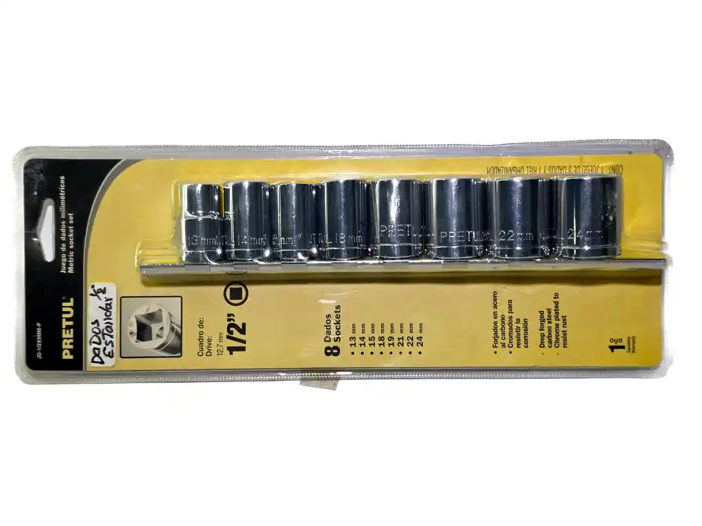 Juego x 8 Dados Estandar en milimetros con cuadro 1/2 PRETUL