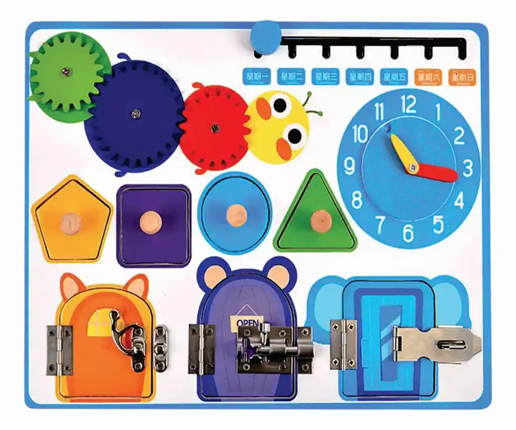 Un juguete de madera con engranajes, herrajes y formas geométricas ofrece múltiples beneficios para el desarro...Ver más