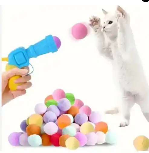 JUGUETE INTERACTIVO PARA MASCOTA PISTOLA CON LANZADOR DE PELOTAS PARA PERRO Y GATO