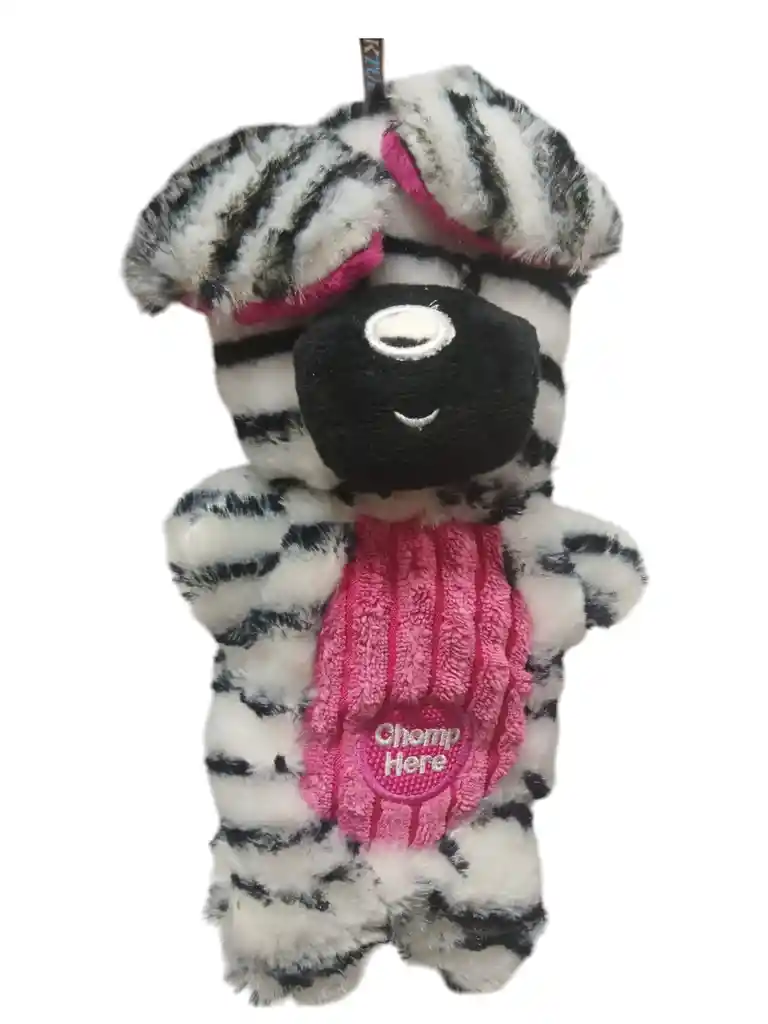 Zebra en peluche de la más alta calidad, pito interno en pancita, resistente para nuestros peluditos. Medidas aproximadas: 28 cm de alto y 15 cm de ancho