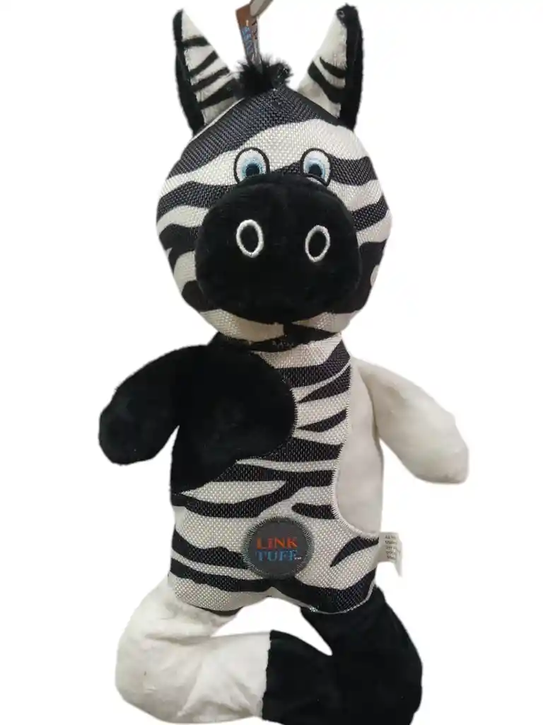 Zebra en peluche de la más alta calidad, pito interno en pancita, resistente para nuestros peluditos. Medidas aproximadas: 30 cm de alto y 16 cm de ancho.