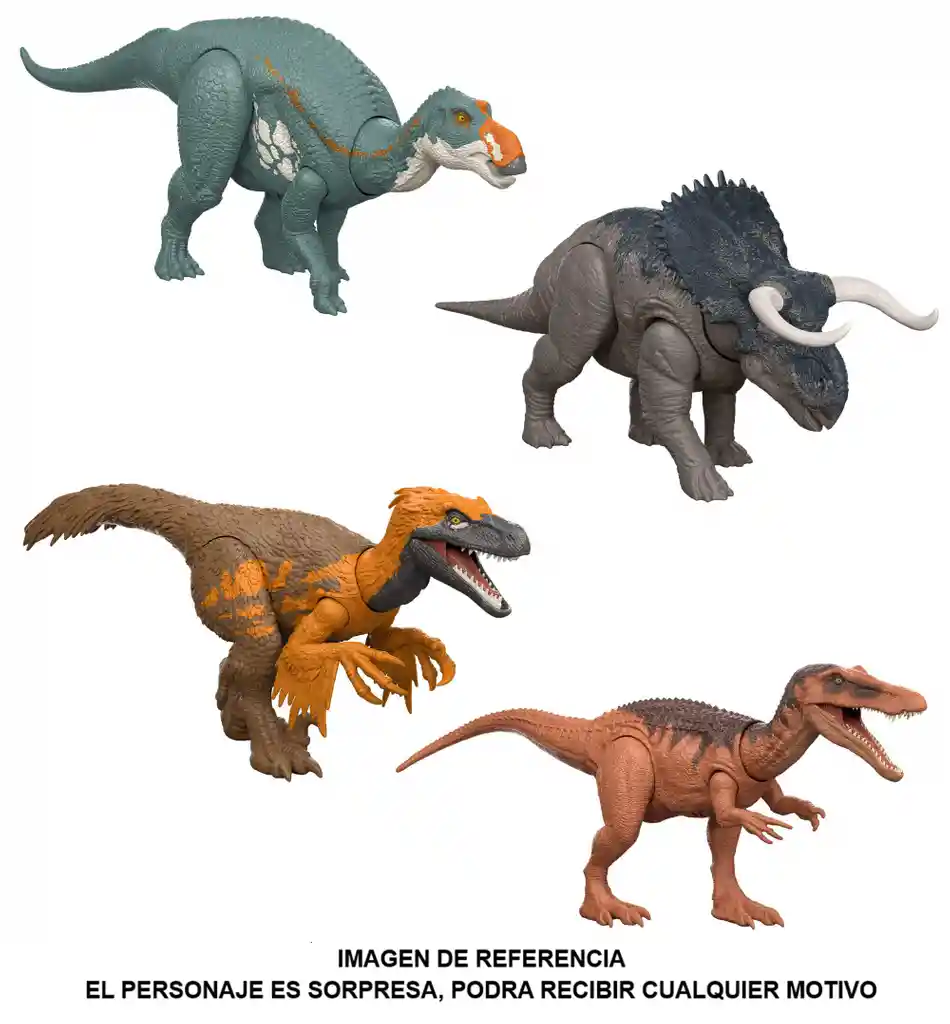 NOMBRE: JURASSIC WORLD DINOSAURIO DE JUGUETE REBIRTH RUGIDO SALVAJE REFERENCIA: JGB87 El precio indicado en la Publicación corresponde a 1 sola figura. (CADA MOTIVO SE VENDE POR SEPARADO) (SURTIDO SORPRESA) Nota: El fabricante nos proporciona este producto en modelos y/o colores aleatorios. Nos resulta imposible proporcionarte el producto en un modelo y/o color en particular. Al confirmar tu compra podrás recibir cualquier motivo del surtido generado por el fabricante. Muchas gracias por tu comprensión. ¡Diviértete y crea tus propias aventuras en compañía de tus amigos con estas increíbles figuras de Jurassic World! Llévate a casa la emoción de Jurassic World con estas figuras y ¡colecciona todas! La escultura realista y la decoración auténtica hacen que estas figuras de dinosaurios cobren vida. Los colores y las decoraciones pueden variar. Para mayores de 4 años. Fabricante: Mattel Importador: Mattel Colombia Recomendaciones: Requiere de la supervisión directa de un adulto, puede contener partes pequeñas, riesgo de asfixia o ahogamiento, no destinar este juguete para menores por debajo de la edad establecida en la etiqueta. Edad mínima sugerida: 4 años Lote: Dato variable. Se puede verificar en el sticker que trae el producto físico. Fecha de fabricación: Dato variable. Se puede verificar en el sticker que trae el producto físico.