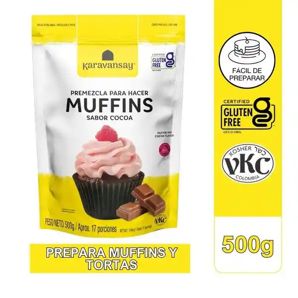 Práctica premezcla para hacer deliciosos muffins libre de gluten, fácil de preparar. Sin azúcar añadida.