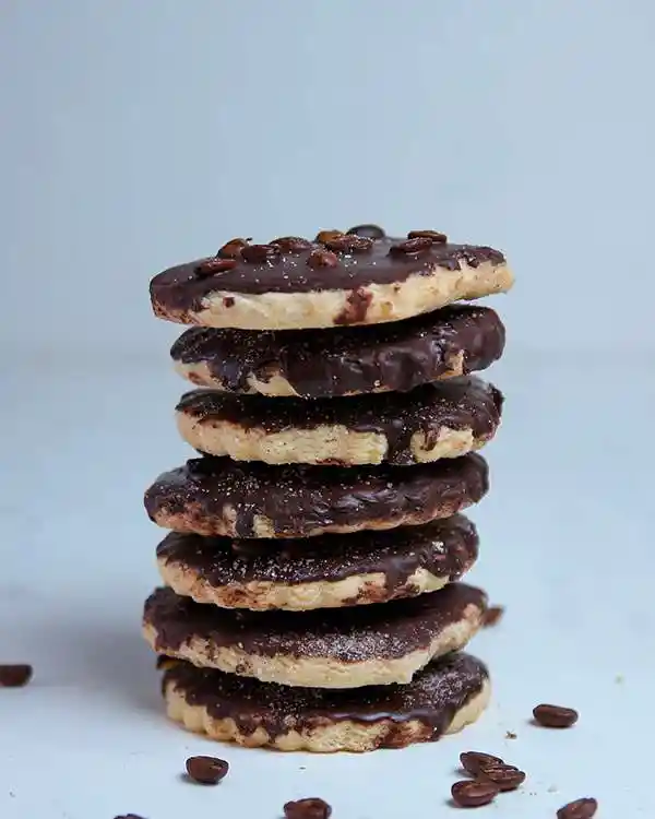 Producto artesanal, sin conservantes y sin azúcares añadidos. Producto vegano. Consérvese refrigerado de 0°C a 3°C y/o congelado. Peso neto 200g – Porciones 4 INGREDIENTES: Harina de grano entero de arroz, fécula de maíz, aceite de oliva virgen extra, aceite de almendras, cobertura de chocolate semi amargo al 70% (pasta de cacao, manteca de cacao, panela), granos de café tostados y sal rosada del himalaya.