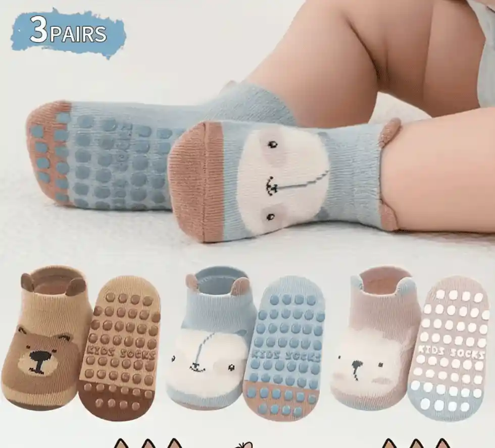 Calcetines para bebé y niño pequeño, con personajes de dibujos animados bordados, ideales para acompañar el día a día con comodidad y estilo. Diseñadas para gatear y dar los primeros pasos, ofrecen un ajuste suave y cómodo que cuida los pies delicados del bebé. Su material es suave y transpirable, perfecto para uso diario. Disponibles en tallas 2-3 años.