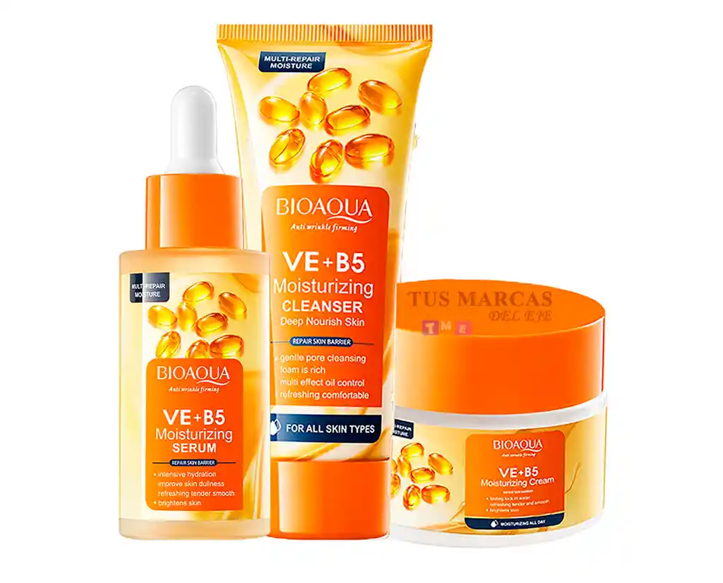 El Kit Vitaminas E + B5 de Bioaqua es la solución ideal para quienes buscan un cuidado intensivo para la piel seca. Este conjunto de tres productos está diseñado para proporcionar una profunda nutrición, reparación y combatir los signos de la edad. Con ingredientes hipoalergénicos y libres de fragancia y parabenos, es perfecto para todo tipo de pieles, garantizando una experiencia suave y efectiva. La combinación de vitamina E y B5 actúa como un potente antioxidante, ayudando a restaurar la elasticidad y luminosidad de la piel. Su fórmula está diseñada para penetrar en las capas más profundas, ofreciendo una hidratación duradera y mejorando la textura de la piel. Además, su uso regular puede ayudar a reducir la apariencia de arrugas y líneas de expresión. Incorpora el Kit Vitaminas E + B5 en tu rutina de cuidado diario y experimenta una transformación en la salud de tu piel. Ideal para quienes desean un tratamiento efectivo y seguro, este conjunto es una inversión en tu belleza y bienestar. Lava bien tu rostro con jabón de vitamina E y abundante agua, aplicar el serum y masajear hasta que se absorba y por último aplica la crema, se recomienda realizar este procedimiento en la mañana y la noche. Contenido del kit vitaminas E y B5 de Bioaqua: Jabón 100 gr Sérum 40 ml Crema 50 gr