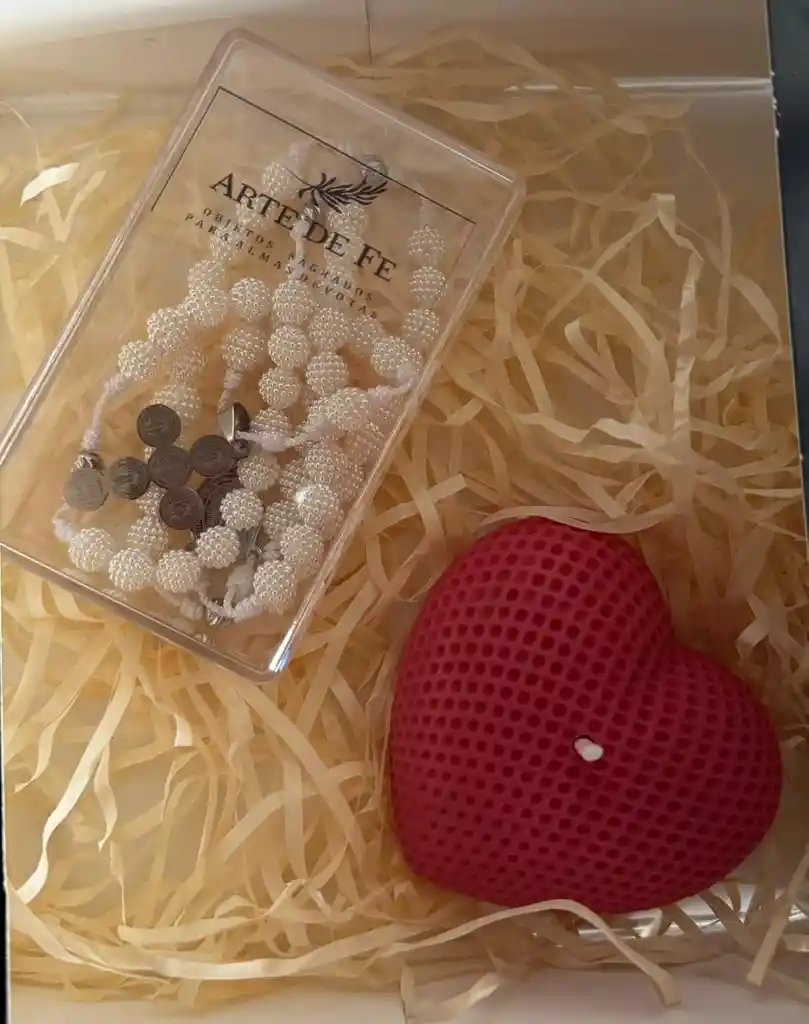 Regala un detalle lleno de significado, espiritualidad y amor. Esta hermosa caja incluye una elegante una vela artesanal en forma de corazón que simboliza amor, esperanza y buenos deseos. Acompañada de un hermoso Rosario en caja acrílica transparente, perfecto como recordatorio espiritual o regalo especial para seres queridos. Cada elemento ha sido cuidadosamente seleccionado para transmitir luz, esperanza y protección, convirtiéndose en un detalle ideal para celebraciones religiosas, agradecimientos o simplemente para fortalecer la conexión espiritual en el día a día. 🙏 Producto elaborado con dedicación y amor 🎁 Presentación lista para regalar 🕯️ Ideal para oración, decoración o momentos de reflexión