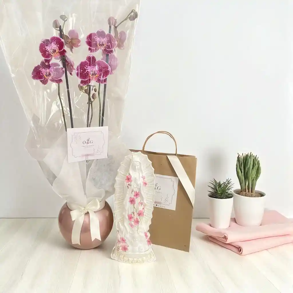 KIT CELESTIAL ORQUIDEA SUPREME BASE CERAMICA CON VIRGEN 22 CMS