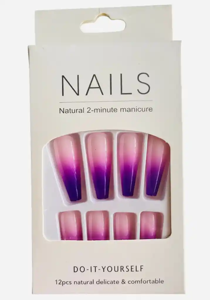 Kit completo de uñas postizas DO IT YOURSELF NAILS degrade blanco morado - Uñas Press On con adhesivo - Ref 12