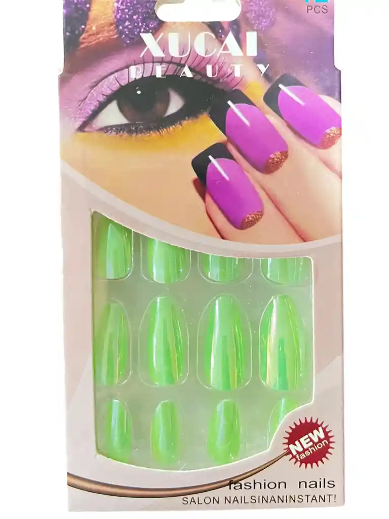 Kit completo de uñas postizas Xucai Espejo verde - Uñas Press On con adhesivo - Ref 1