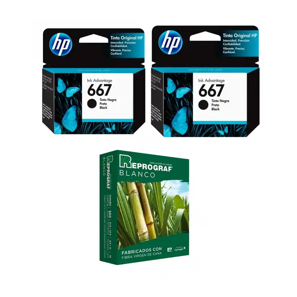 Asegura impresiones de calidad y un flujo de trabajo continuo con este completo kit de impresión HP. Incluye dos cartuchos de tinta original HP 667 negro, diseñados para ofrecer textos intensos, líneas precisas y resultados profesionales desde la primera hasta la última página. Gracias a su formulación original, estos cartuchos protegen tu impresora y garantizan un rendimiento confiable en cada impresión. El kit se complementa con una resma de papel, ideal para documentos, informes, facturas y uso diario tanto en el hogar como en la oficina. Esta combinación te permite contar con los insumos esenciales en un solo paquete, optimizando costos y evitando interrupciones por falta de suministros. Una solución práctica para estudiantes, profesionales y empresas que buscan calidad, ahorro y respaldo HP, asegurando impresiones consistentes, mayor productividad y la tranquilidad de usar consumibles originales.