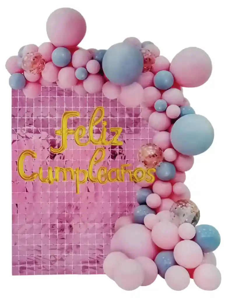 En el Tío Party Supplies Nos Encanta Ayudarte a Celebrar Esas Fechas Especiales Sin Necesidad Que Seas un Experto Decorador. En Este Kit Encuentras Todo lo Que Necesitas Para Una Decoración Espectacular. Incluye: 1 Letrero de globos cursivo dorado. 1 Cortina de cuadros rosada 1 metro de ancho x 2 metros de largo. 5 Globos cristal con confetti. 3 Globos Rosados R12 36 Globos rosados R10 2 Globos Azul pastel R12 20 Globos Azul pastel R10 1 Cinta para armar arcos 1 Cinta adhesiva para pegar globos