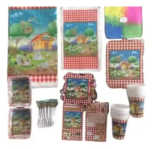 Kit para piñata de los personajes favoritos de los peques, contiene: •24 tarjetas de invitacion •20 bolsas para sorpresas •24 bandejas para torta •24 vasos •20 cubiertos •1 mantel •1 guirnalda •1 feston