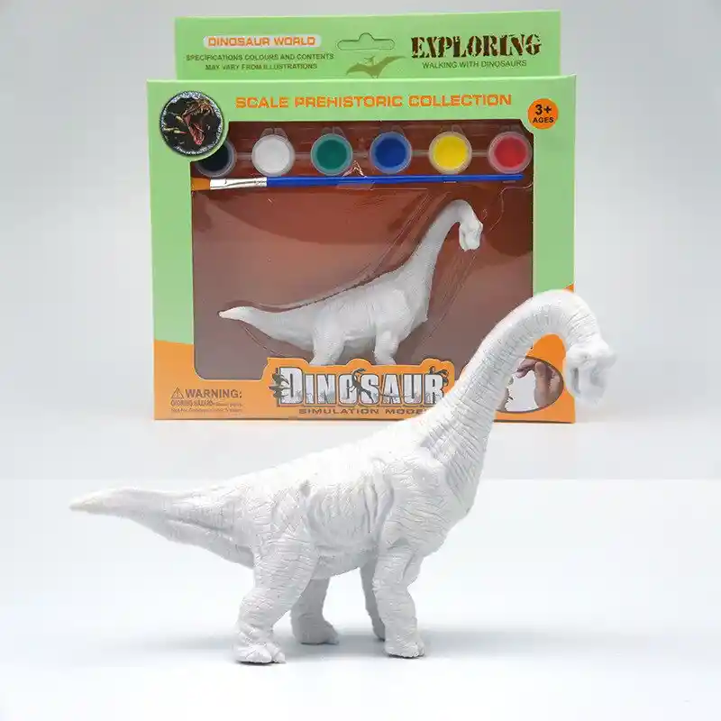 Kit "Dinosaur World" - ¡Pinta tu Propio Dinosaurio Cuello Largo!¡Un viaje al mundo prehistórico que despierta la creatividad! Este fascinante kit permite a los niños no solo jugar con un dinosaurio, sino también convertirse en paleontólogos y artistas al darle sus propios colores.Ideal para niños amantes de la naturaleza y las manualidades.🌟 Lo que Amarán de este Kit:Dinosaurio Gigante para Personalizar: Incluye la figura de un dinosaurio de cuello largo (Saurópodo), lista para ser transformada con una capa de pintura única.Modelo de Simulación a Escala: La figura presenta detalles realistas y una textura marcada, parte de la colección "SCALE PREHISTORIC COLLECTION".Set de Pintura Completo: El kit viene con seis colores vibrantes (Blanco, Rojo, Amarillo, Azul, Verde, y uno más) y un pincel profesional para empezar a pintar de inmediato.Doble Diversión: Ofrece una actividad de manualidades (pintar) y un juguete para juego imaginativo (una vez seco).Estimula el Desarrollo: Favorece la concentración, la creatividad y la motricidad fina al manipular el pincel y mezclar los tonos.📦 Detalles del Contenido:1 x Figura de Dinosaurio (Cuello Largo) en blanco.1 x Set de 6 Pinturas.1 x Pincel.Edad Recomendada: 3 años en adelante ($3+$ AGES).