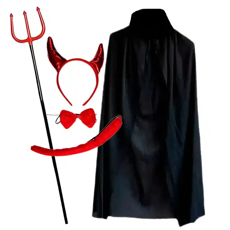 Descripción Dale un toque espectacular a tu disfraz este Halloween con este Kit Demonio de 5 piezas, ideal tanto para hombre como para mujer. Incluye todos los accesorios necesarios para lograr un look llamativo y divertido: cachos de diablo, cola, corbatín, tridente y capa. Perfecto para fiestas de disfraces, presentaciones escolares, eventos temáticos o reuniones con amigos. Fabricado en materiales ligeros y cómodos, es fácil de usar y se adapta a diferentes edades. ¡APROVECHA!: * Producto Nuevo, En su Empaque. * Contenido: Kit de 5 piezas * Somos Distribuidores de la Marca. * Entregas el Mismo Día. (Bogotá) * Disponibles en las REF. y Colores Aptos para ELEGIR. * Kit de 5 piezas: diadema con cachos, cola, corbatín, tridente y capa. * Unisex, ideal para hombres y mujeres. * Material ligero y cómodo, fácil de llevar por horas. * Perfecto para fiestas de Halloween, cosplay y disfraces temáticos. * Accesorio completo para lograr un look de demonio en segundos. Su diseño llamativo y colorido hará que te conviertas en el centro de atención en cualquier fiesta. ---------- kit disfraz demonio halloween, cachos diablo disfraz, tridente capa demonio, kit disfraz halloween hombre, kit disfraz halloween mujer, disfraz demonio completo, combo disfraz halloween, accesorios demonio halloween, disfraz infierno diablo, disfraz halloween adulto, disfraz cosplay demonio, disfraz fiesta halloween, disfraz unisex halloween, disfraz demonio hombres mujeres, kit demonio 5 piezas