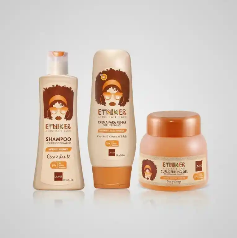Kit Rizos 3 Primeros Productos. ETNIKER Contiene: - Shampoo Nutritivo Etniker 250mL. - Crema de Peinar Etniker 290g. - Gel Curly Definig Etniker 300g. La riqueza de lo natural está inmersa en la diversidad de nuestras culturas. Somos privilegiados al poder gozar de ella y mostrarnos al mundo sin restricción alguna. El atractivo más interesante es marcar nuestro propio estilo y alejarnos de los prototipos que impone la sociedad. Para ETNIKER de L’MAR lo más importante es darle prioridad a tú belleza, a tú cuidado personal marcando la diferencia. Todos tenemos un atractivo único; así como lo es su cabello Texturizado, despeinado o rebelde. Que te consideres bella desde todo punto de vista, que pongas tú sello personal. De ahí que nuestro compromiso es suplir cada necesidad y hacerla real. Si la naturaleza te premió con un cabello Afro, rizado u ondulado debes cuidarlo con productos especializados. L’MAR ha desarrollado ETNIKER, una completa línea con activos especiales para las necesidades de tu cabello. Ya no tendrás que recurrir a productos que no aportan mayor efectividad a tú cabello. Renuévate con ETNIKER. Una marca vallecaucana y 100% colombiana que llega con una línea completa y con los resultados que siempre has querido. Además de reparar, nutrir, proteger e hidratar; le da una definición espectacular a cada fibra, sin maltratarlo y mejor aún devolviéndole la fuerza y el brillo real. ETNIKER la belleza de lo natural.