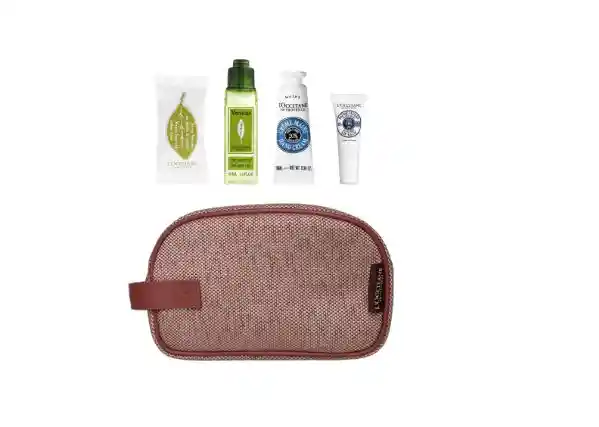 Kit LOccitane Contiene 5 Unidades. LOccitane Jabón Sólido Hojita Verbena 25 g + LOccitane Gel de Ducha Verbena 50 mL + LOccitane Crema Para Manos Karité Confort 10 mL + LOccitane Bálsamo Para Labios Karité 4 mL + LOccitane Bolsito Café.