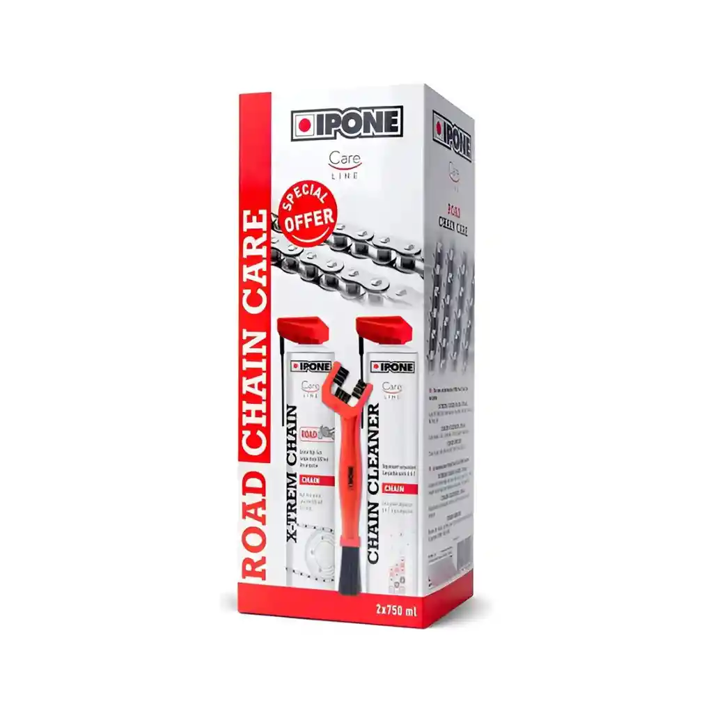 El Kit Lubricante Cadena Ipone Moto Ciudad Carretera C/ Cepillo es un producto esencial para todos los entusiastas de las motos y cuatriciclos. Este kit de alta calidad de la marca Ipone, modelo ROAD CHAIN CARE, es la solución perfecta para mantener tu cadena en las mejores condiciones, prolongando su vida útil y optimizando su rendimiento. Con un volumen de 1500 mL, este lubricante de cadena es suficiente para numerosas aplicaciones, lo que lo convierte en una opción económica y duradera. Su fórmula especializada penetra profundamente en los eslabones de la cadena, proporcionando una lubricación superior y protegiendo contra el desgaste y la corrosión.