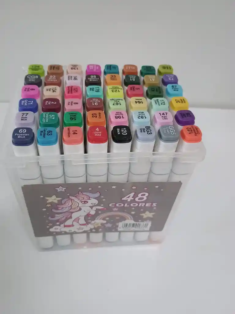 Punta importada, asegurar una pintura suave. Color brillante, ligera diferencia de color. Pigmento aceitoso, asistente con disolvente de alcohol. Color: como imágenes Especificaciones: doble punta Atributo: aceitoso, alcohólico (pigmento aceitoso, disolvente de alcohol) Aplicación: Dibujo a mano, dibujo, grafito, manga, dibujos animados, etc. Longitud : 15,4 cm