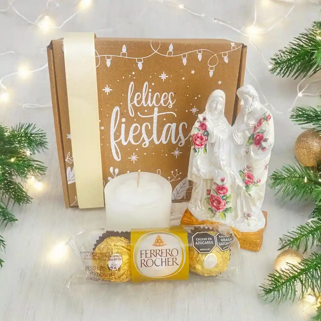 KIT NAVIDEÑO SAGRADA FAMILIA . CAJITA NAVIDAD CON FERREROS Y VELA