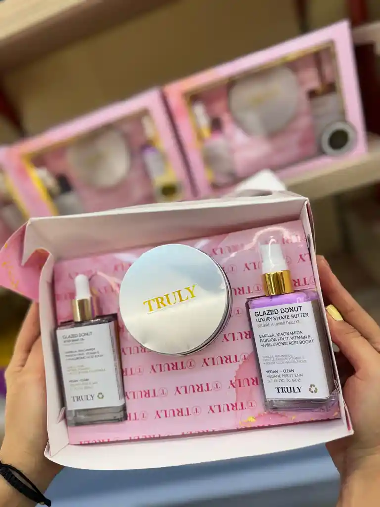 Kit truly calidad 1.1 incluye aceite, crema y mantequilla, deja un increible olor, te deja la piel suave y ayuda a blanquear. es ideal para después del afeitado o si quieres oler rico todo el dia